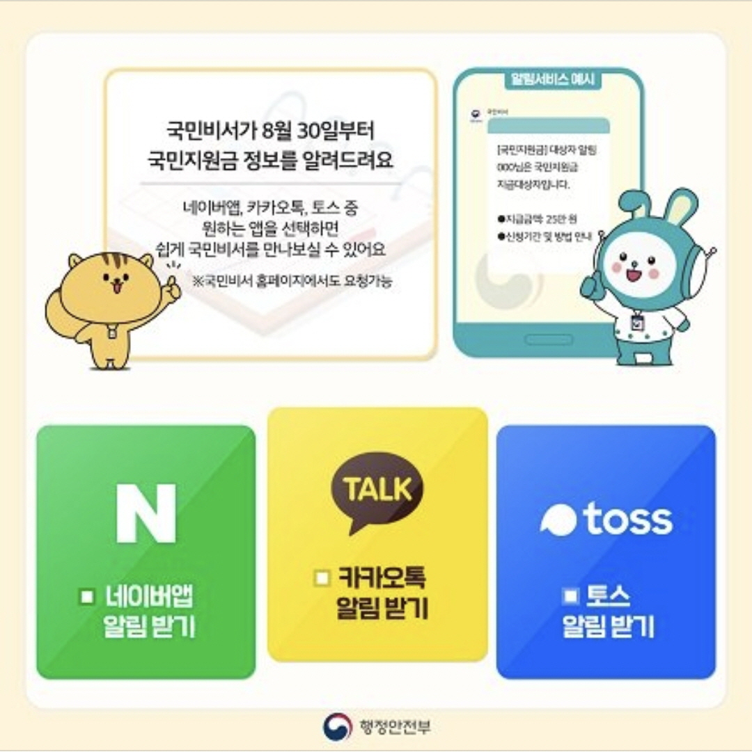 네이버앱, 카카오톡, 토스 국민비서 알림받기