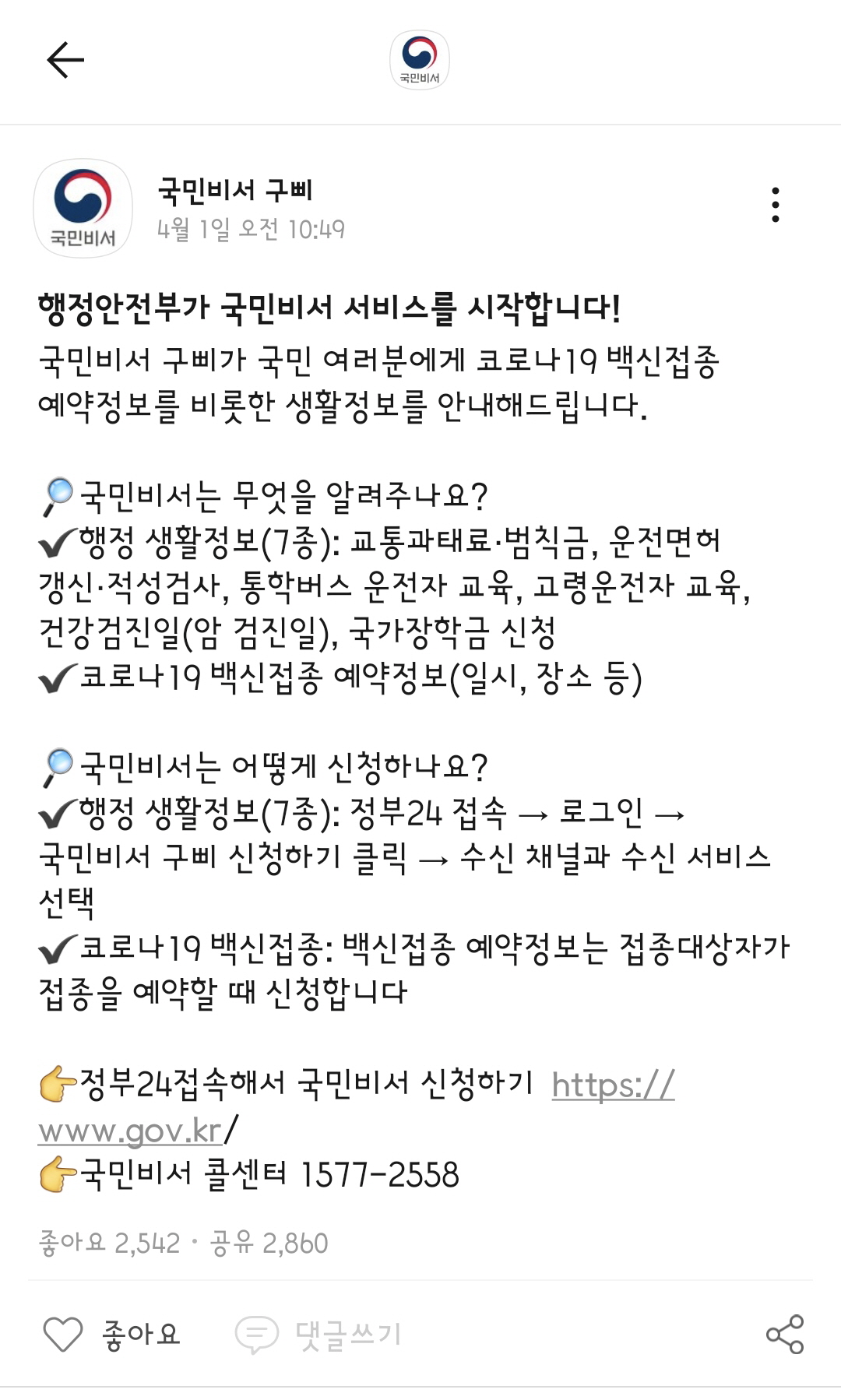2021.09.05 - [생활 정보] - 네이버앱, 카카오톡, 토스 국민비서 알림받기