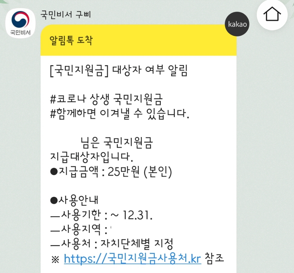 - 국민지원금 지원대상 알림은 아래 글을 참고하시기 바랍니다.