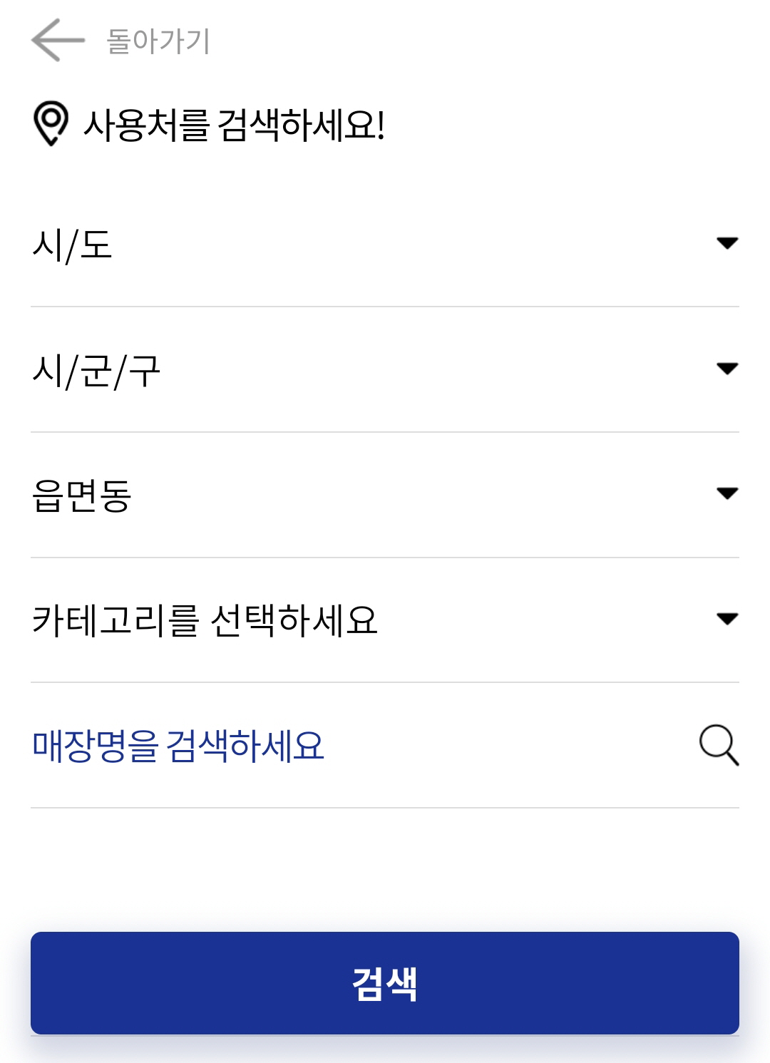 - 시/도 -> 시/군/구 -> 읍면동 -> 카테고리를 선택하고 검색해 볼 수 있습니다.