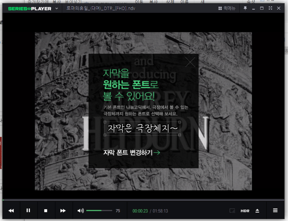 - 스트리밍에서는 자막언어와 자막 스타일 변경이 가능합니다.