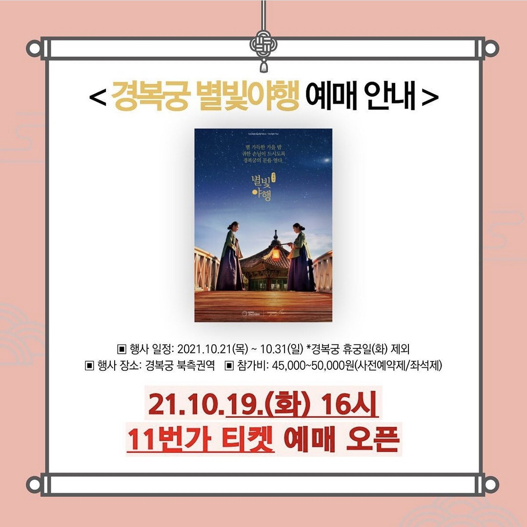 경복궁 별빛야행 티켓 예매 오픈일자 : 2021.10.19 (화) 16:00