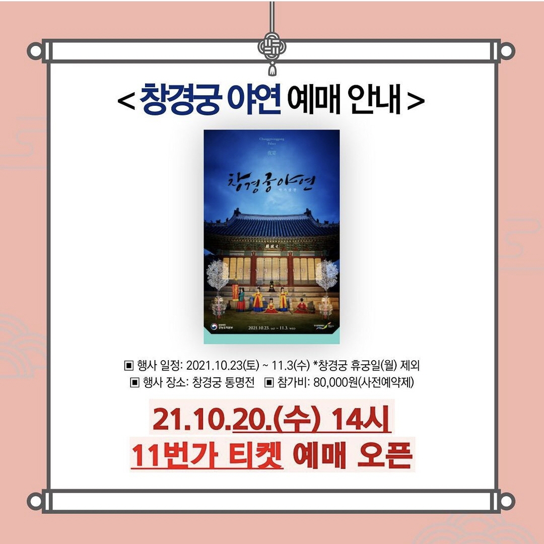 창경궁 야연 티켓오픈 : 2021년 10월 20일(수) 14:00