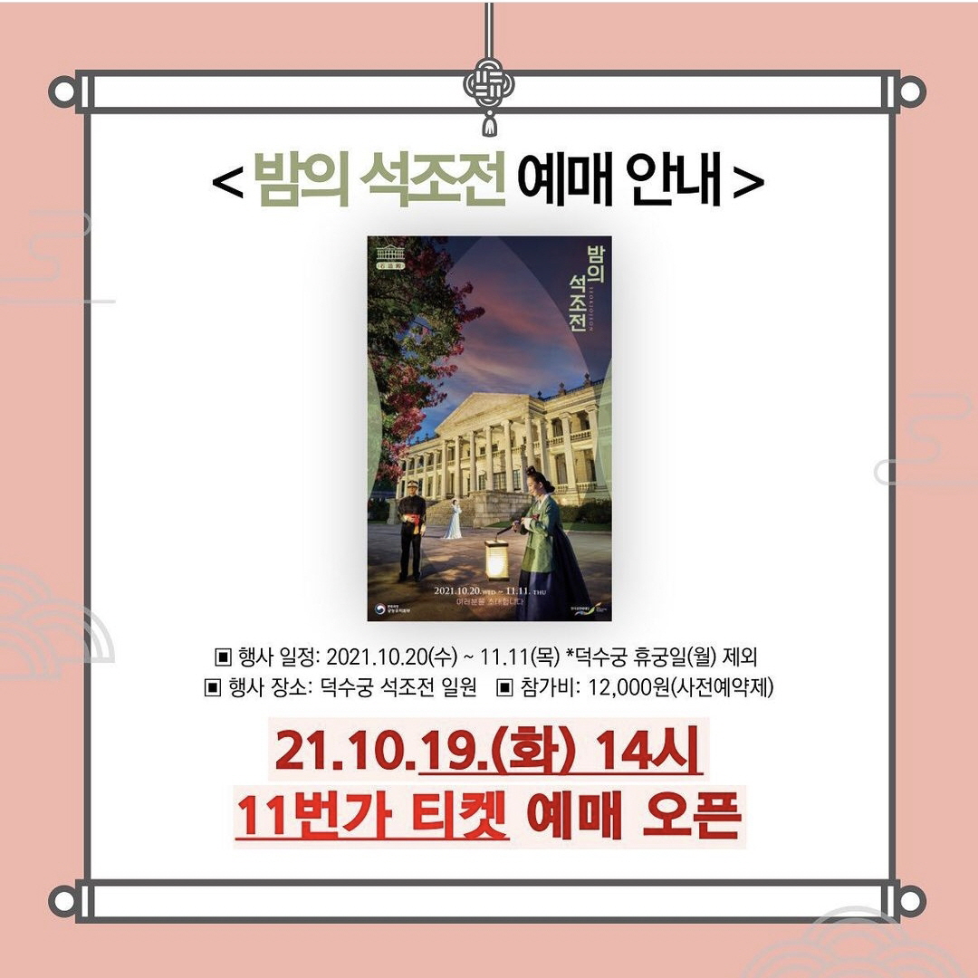 덕수궁 밤의 석조전 티켓 예매 오픈일자 : 2021.10.19 (화) 14:00