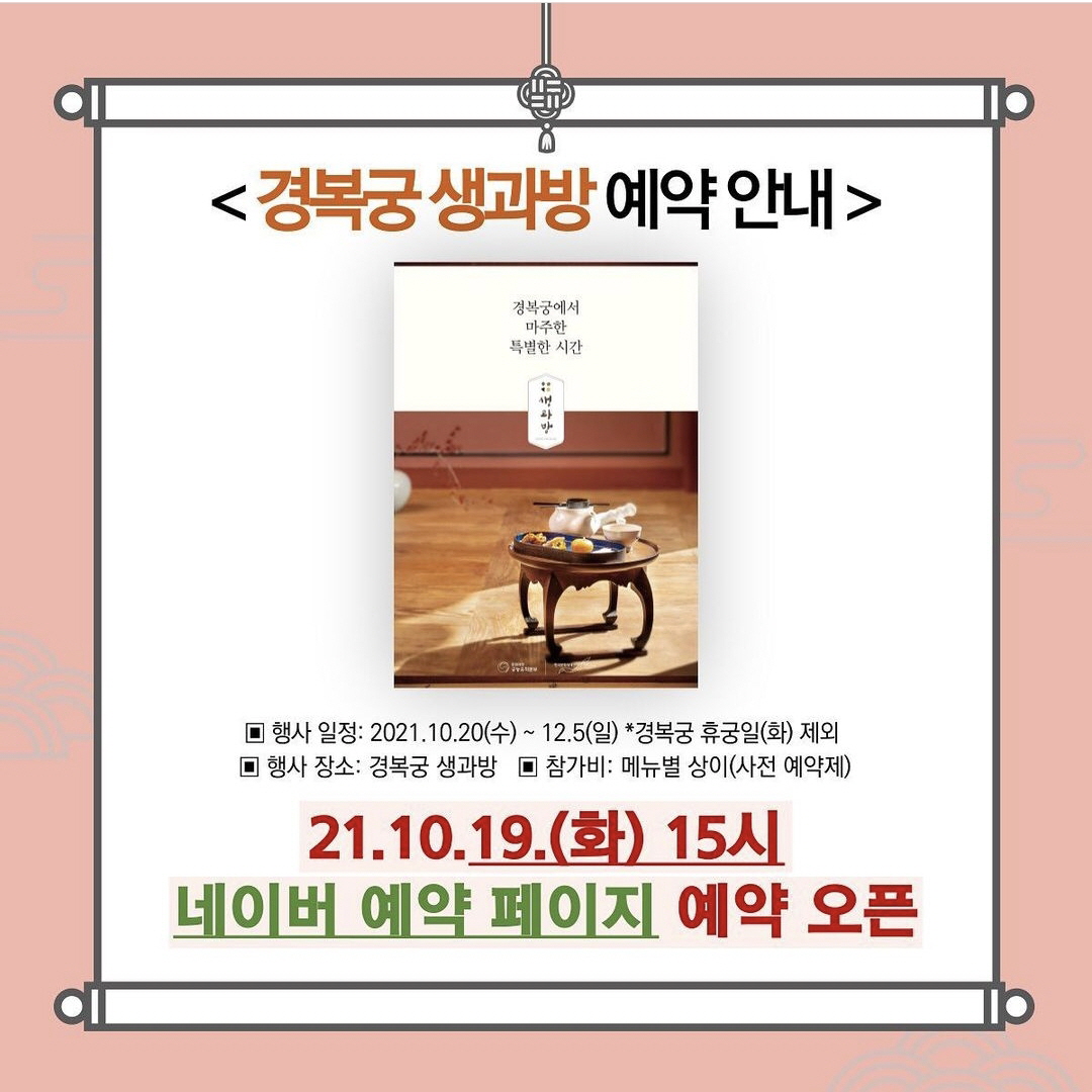 경복궁 생과방 티켓 오픈 : 2021년 10월 19일 오후 15:00