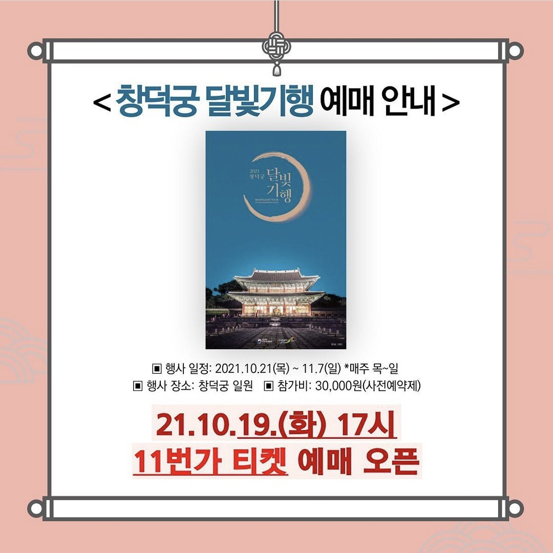 창덕궁 달빛기행 티켓 예매 오픈일자 : 2021.10.19 (화) 17:00