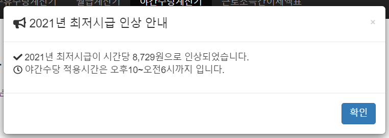 2021년 야근수당 야갼수당 계산은 아래 사이트에서 하실 수 있습니다.