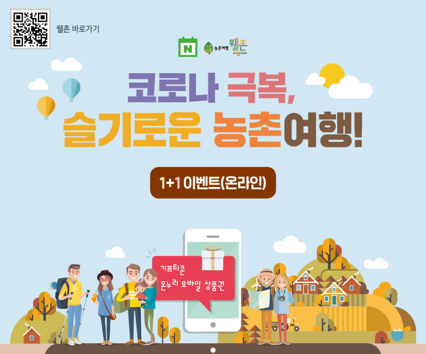 코로나 극복 슬기로운 농촌여행 1+1 온라인 이벤트는 슬기로운 농촌여행(50% 할인지원)과 별도로 진행되는 이벤트입니다.