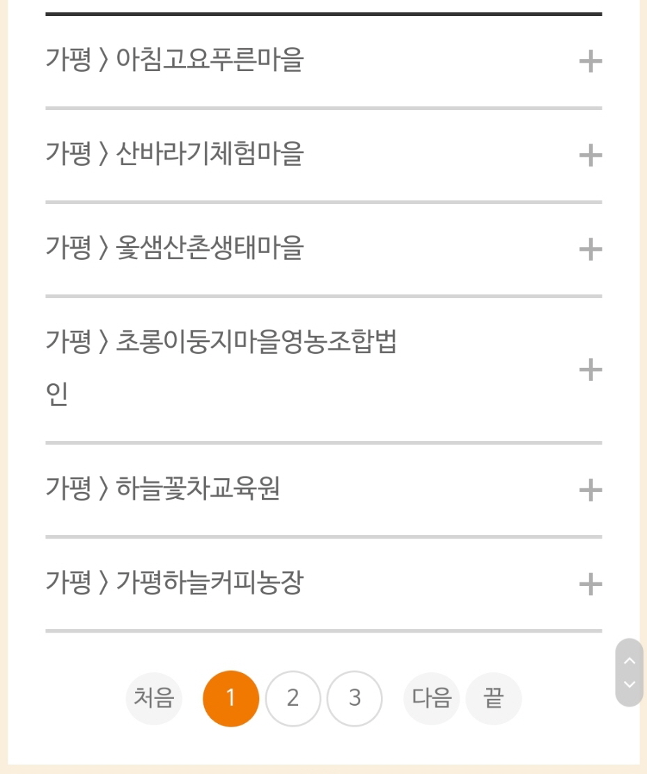 웰촌사이트에 등록된 농촌여행지 중 가고 싶은 지역 선택하기에서 원하는 지역을 선택합니다. 예시로 경기 / 가평을 선택해 보겠습니다.