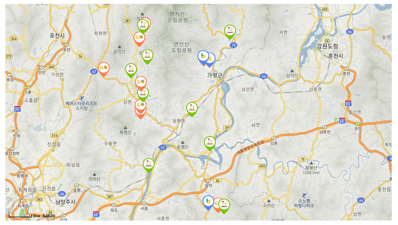 그럼 지도상에 그림처럼 사용처와 위치가 나타납니다.