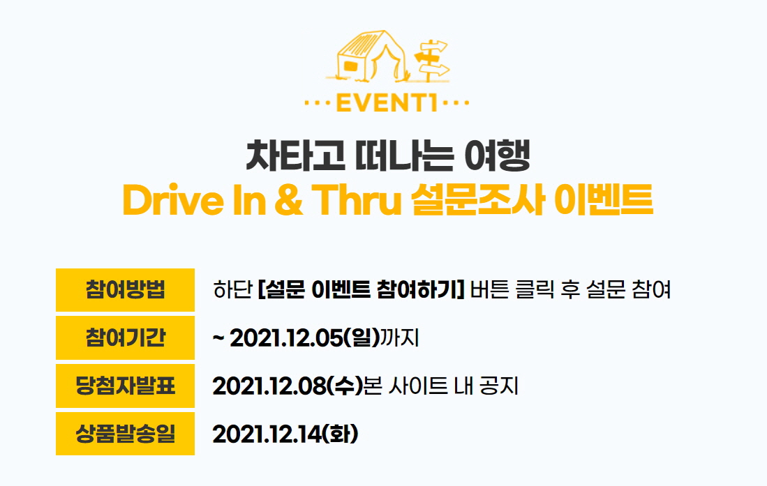 한국관광공사 대한민국 구석구석에서 안전한 자동차 여행 캠페인을 진행중인데요 이벤트에 참여하고 다양한 선물을 받을 수 이는 차타고 온라인 이벤트를 2021년 12월 5일까지 진행하고 있습니다.