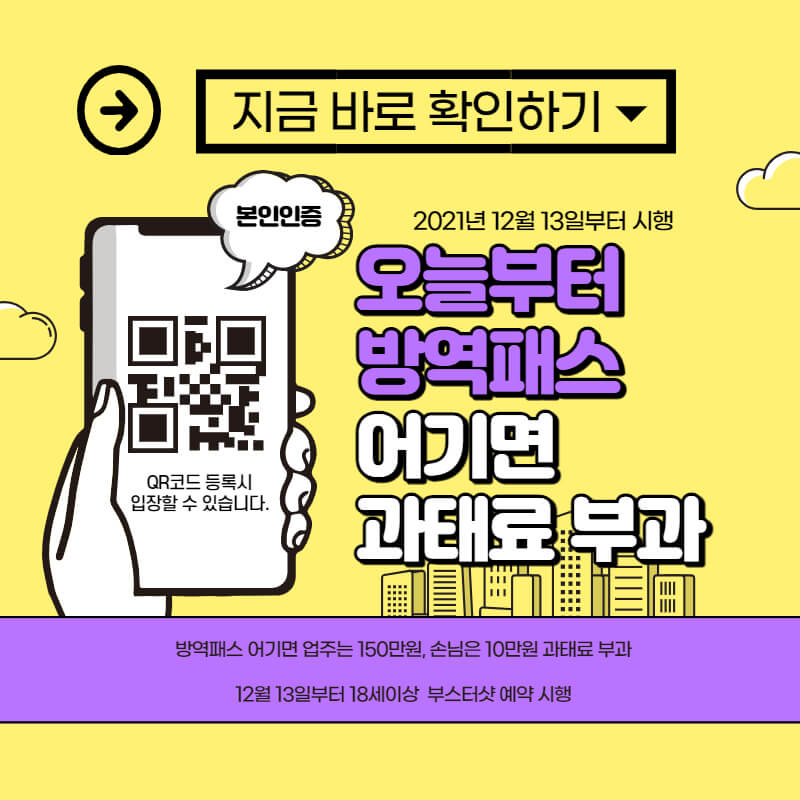 방역패스란? 백신 접종을 증명하거나 코로나 검사를 통해 음성임을 확인했다는 증명서로 지난 11월 1일부터 시행됐던 단계적 일상 회복과 함께 시행되었습니다.