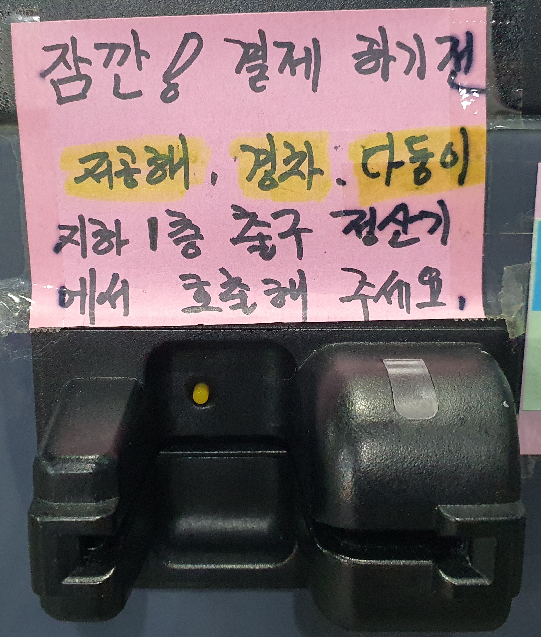기타 할인 및 문의사항은 무인정산기에서 호출버튼을 눌러 문의하시면 됩니다.