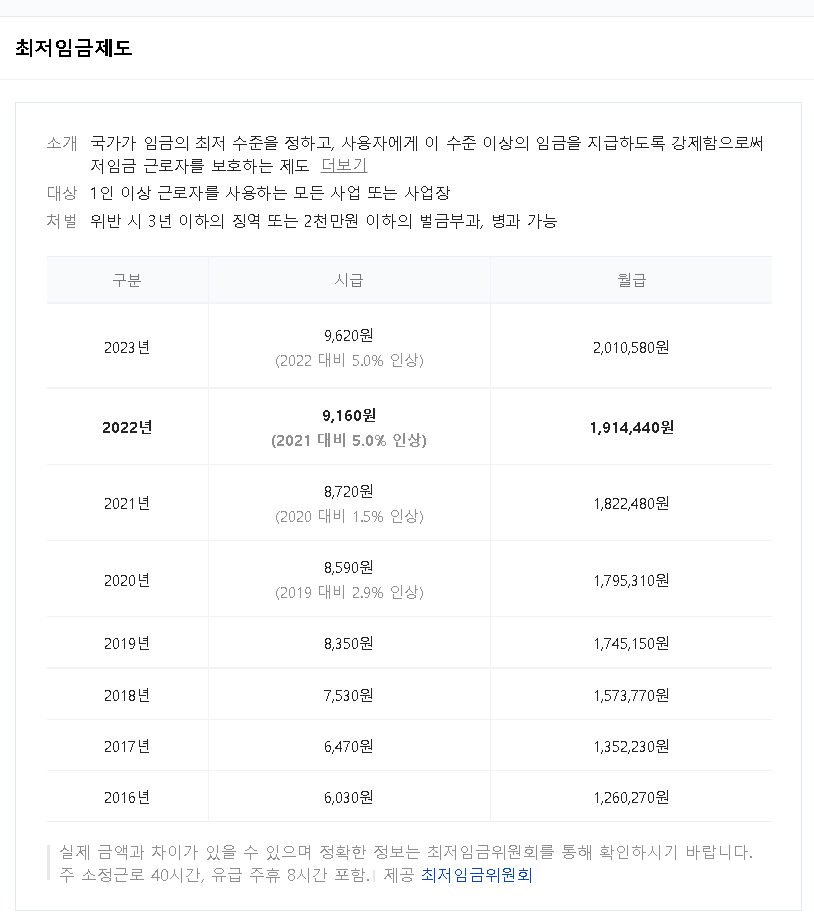알바시급, 주휴수당, 월급, 연봉, 야간수당을 알아보기 전에 2023년 최저시급 및 최저임금은 위의 표를 참고하시기 바랍니다.