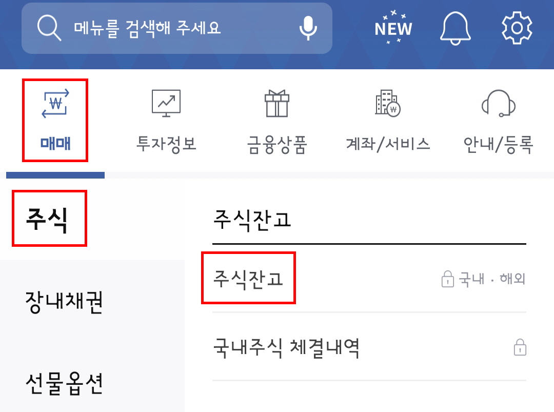 한국투자증권 앱은 저도 카카오뱅크 주식계좌 만들기 이벤트때 만들어놓고 한번도 사용하지를 않아서 사용법을 잘 몰라서 주식잔고를 어떻게 봐야하는지 조금 헤맸습니다. 한국투자증권 앱에서 주식잔고를 확인하려면 홈 화면에서 메뉴를 누른 다음 매매 -> 주식 -> 주식잔고의 순서대로 메뉴를 눌러주면 됩니다.