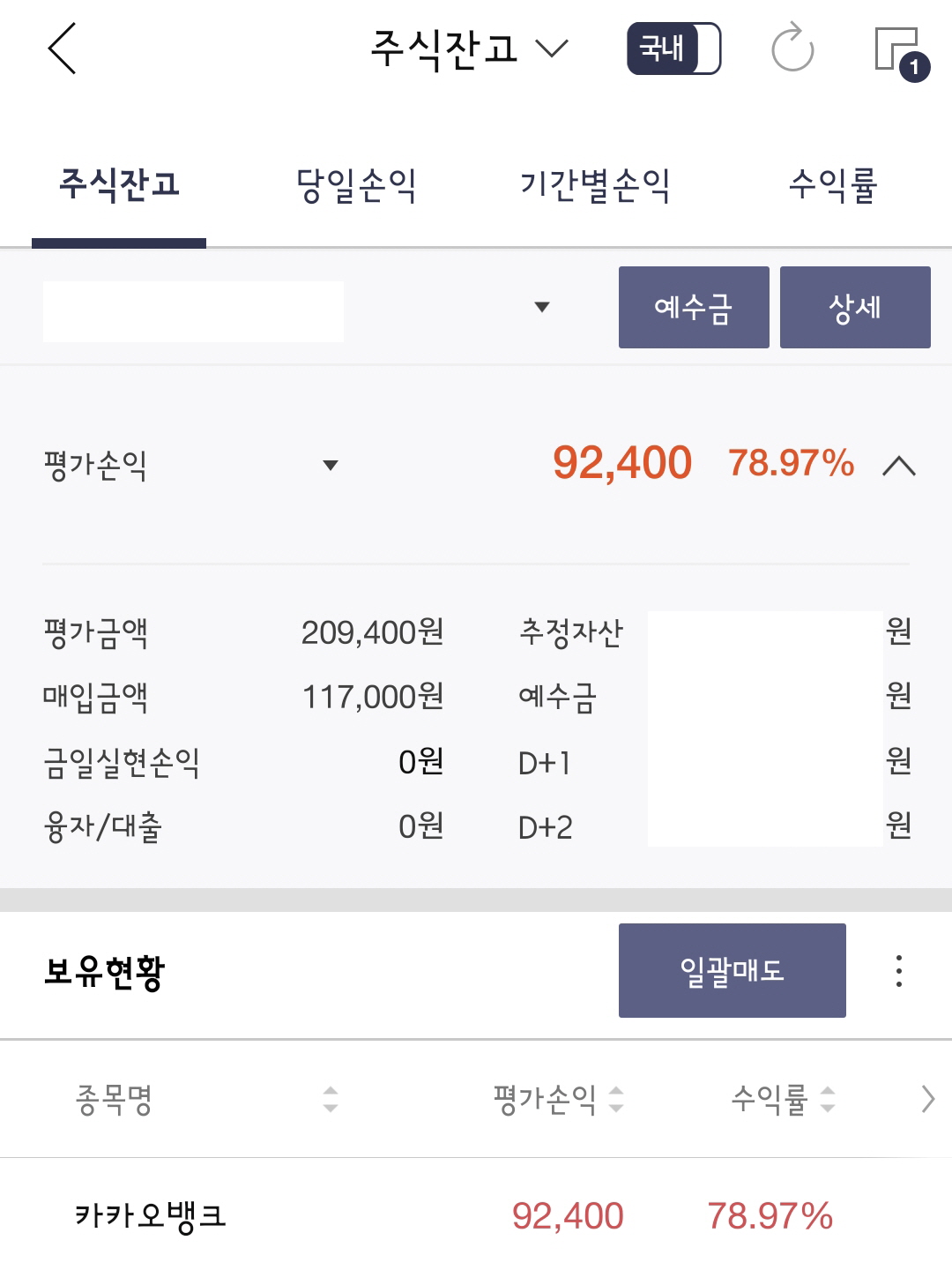 다른 증권사 앱으로 확인해보니 상한가를 치고 있어서 굳이 매매할 생각을 하지않았고 주말에서야 계좌 상태를 확인해봤습니다.